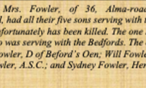 Henry Fowler was working as a Bricklayers Labourer when Frank was born, but by 1901 he was recorded as a Gardener on the Census return and the family had moved to 17 Chapel Street in Hemel Hempstead. Frank was an Errand Boy at fourteen years of age.